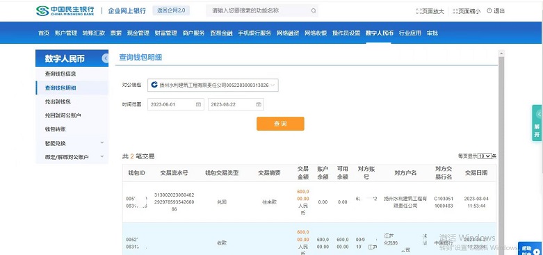 公司实现工程建设领域首笔数字人民币交易